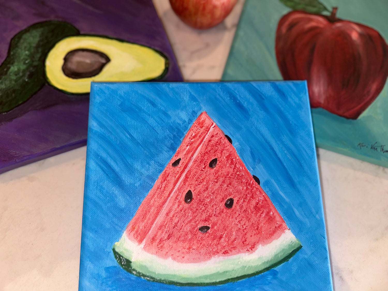 The artist behind all of the art on all of our products is Kari Van Thomme. Kari is a passionate mother, Michigander, Iowan, Foodie and Artist. She paints all of the designs for the products here at Foodie Trendz. She bases each design off of her experiences and each foods connection to her family and friends.
